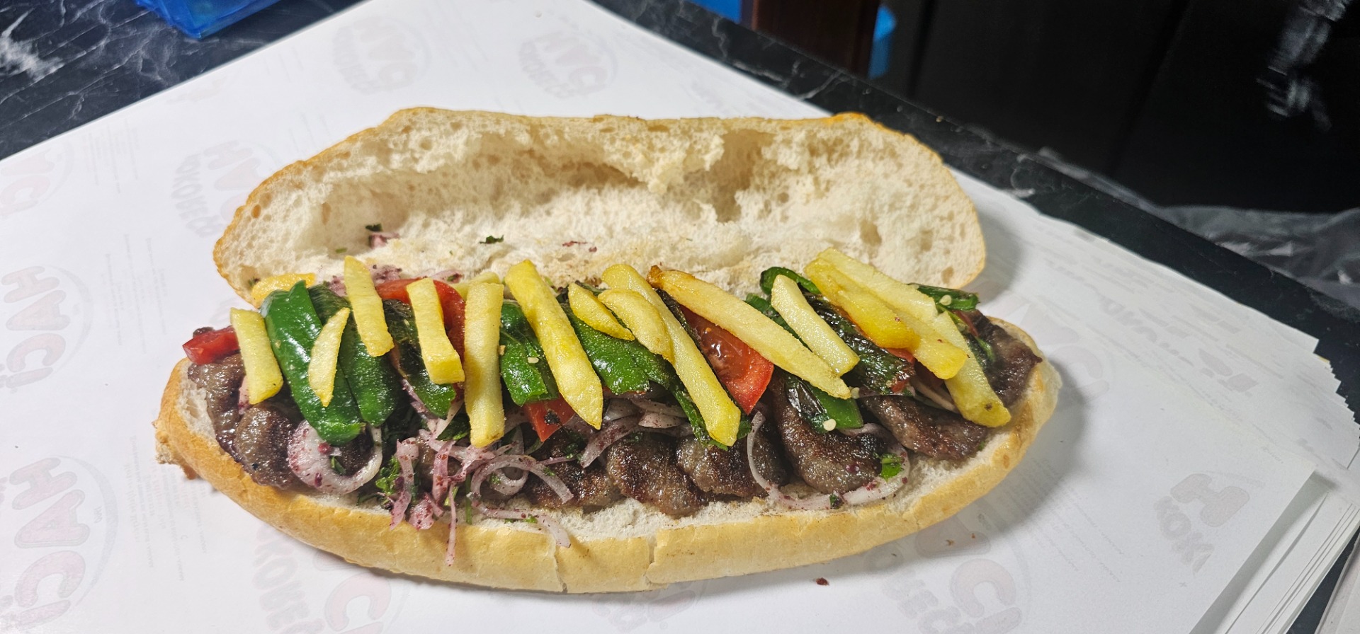 Ekmek arası, az baharat ve iri kıyım fırın kokoreç servisimizin yanı sıra, ince kıyım / ızgara kokoreçimiz mevcuttur.